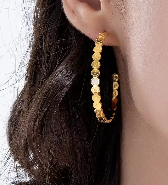 The Harlow Hoop w/ Pearl Accent - 18K Plated - GOLD