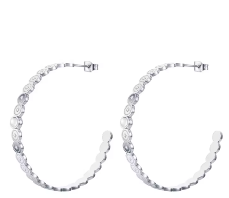 The Harlow Hoop w/ Pearl Accent - 18K Plated - Silver