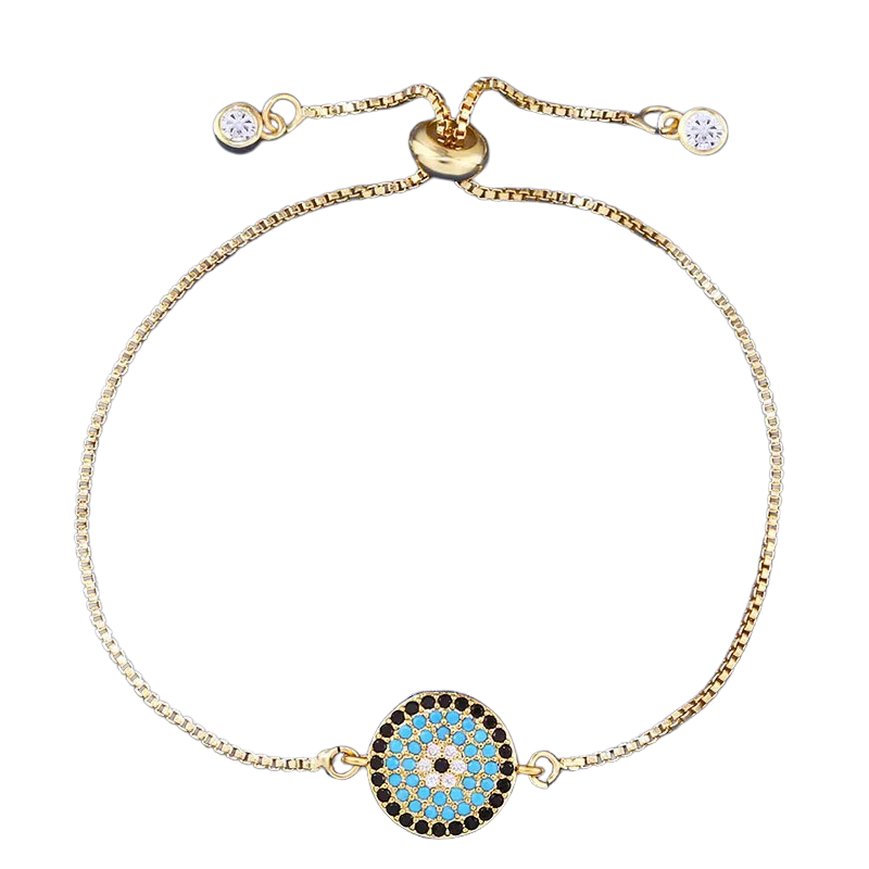 Bring a touch of coastal protection to your everyday stack. The Capri Evil Eye Bracelet features a stunning turquoise, black, and white CZ pavé evil eye set on a sleek adjustable slider chain, making it perfect for every wrist and every style. Wear it solo for a delicate pop of color or layer it with your favorite PALM pieces for that effortless Mediterranean-chic vibe.