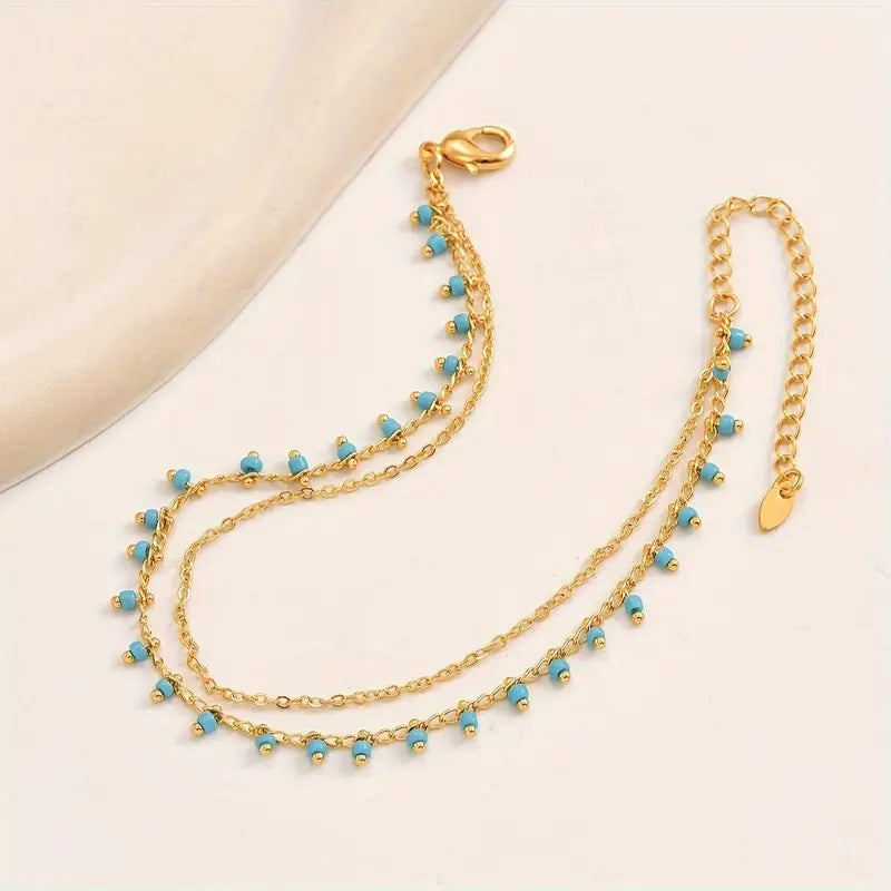This Queen of the Nile Turquoise Anklet is crafted with 18K gold for a luxurious finish. The stunning turquoise stone adds a pop of color to any outfit while also promoting positivity and protection. Elevate your style and energy with this beautiful anklet.