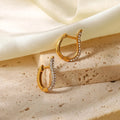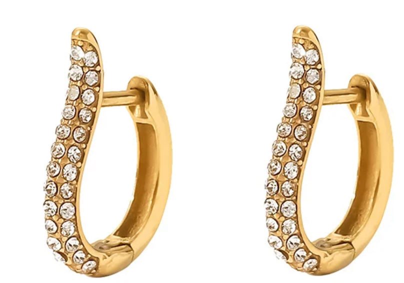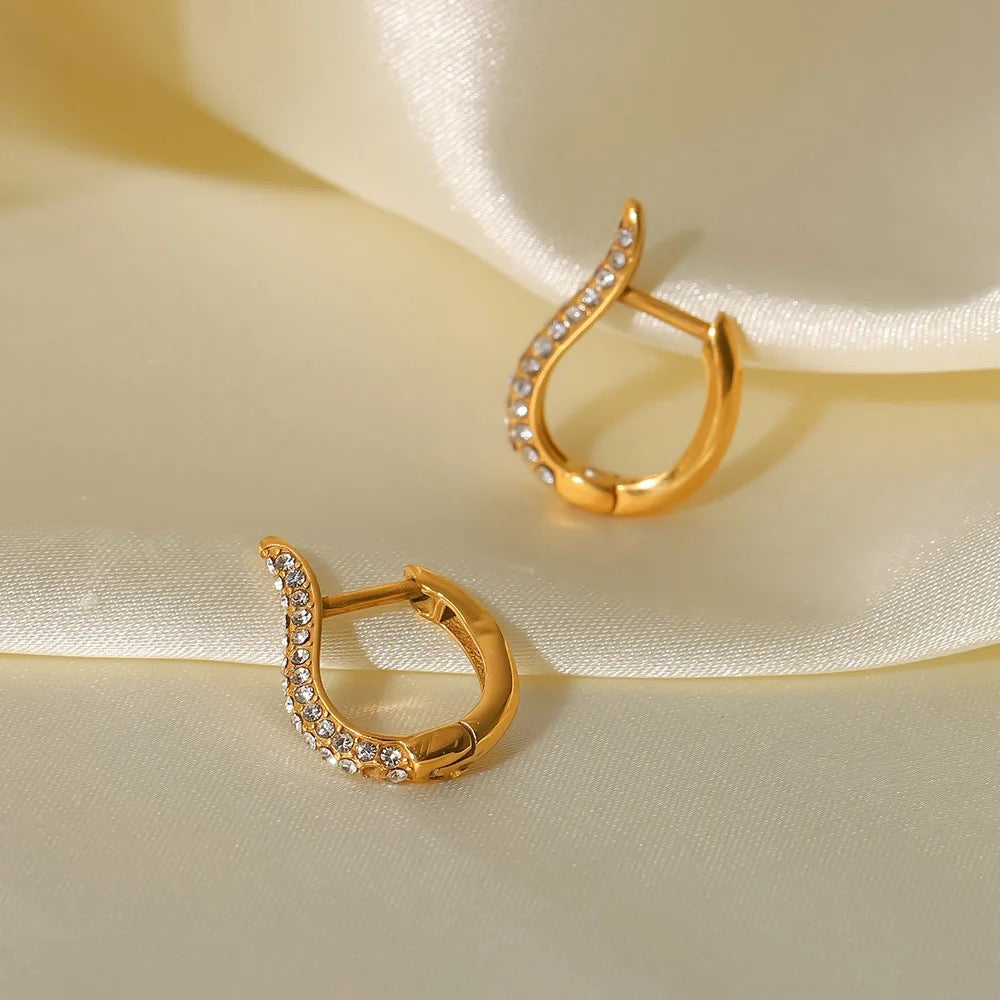 Introducing the Camille CZ Huggie – a refined and elegant dainty hoop earring, beautifully adorned with sparkling CZ diamonds. Designed for effortless sophistication, these huggies hug the ear comfortably while adding a touch of subtle glamour to your everyday or evening look. Perfect for layering or wearing solo, the Camille CZ Huggies are your go-to for timeless sparkle and style.