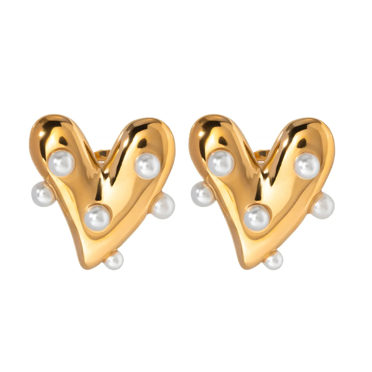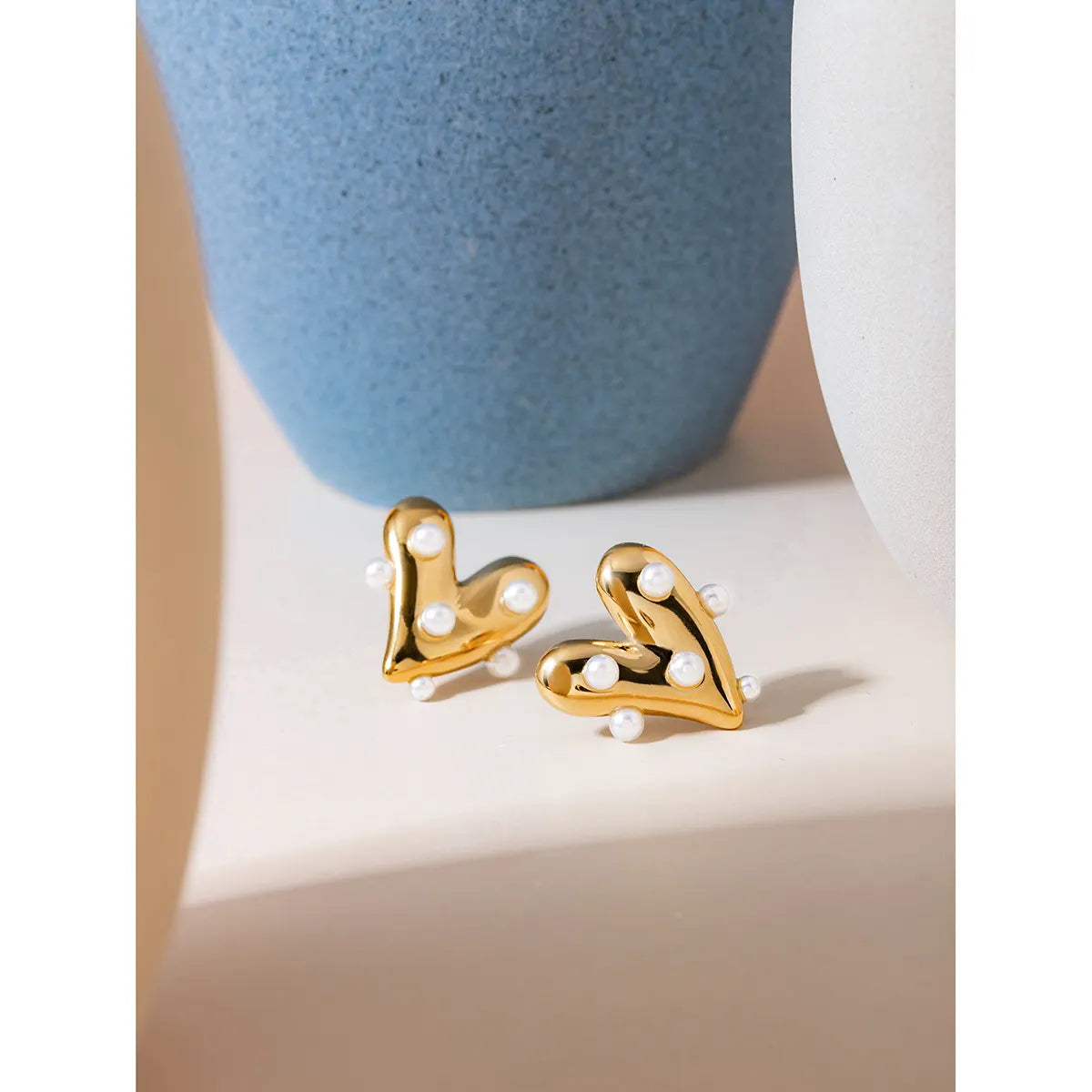 Meet the Drew Heart Earrings—stylish and trendy! Crafted from 18K gold and adorned with beautiful pearls, these earrings are perfect for any occasion. They’re waterproof and hypoallergenic, ensuring comfort and durability. With their charming heart shape, they add a fun touch to your look. Elevate your style with the Drew Heart Earrings!