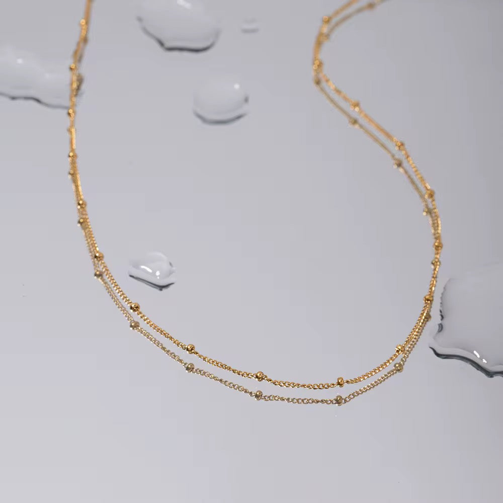 Effortlessly chic, the Elizabeth Beaded Necklace features delicate beads that align beautifully along an 18k gold-plated chain. Its dainty design strikes the perfect balance between minimalism and elegance, making it a versatile piece for layering or wearing on its own.