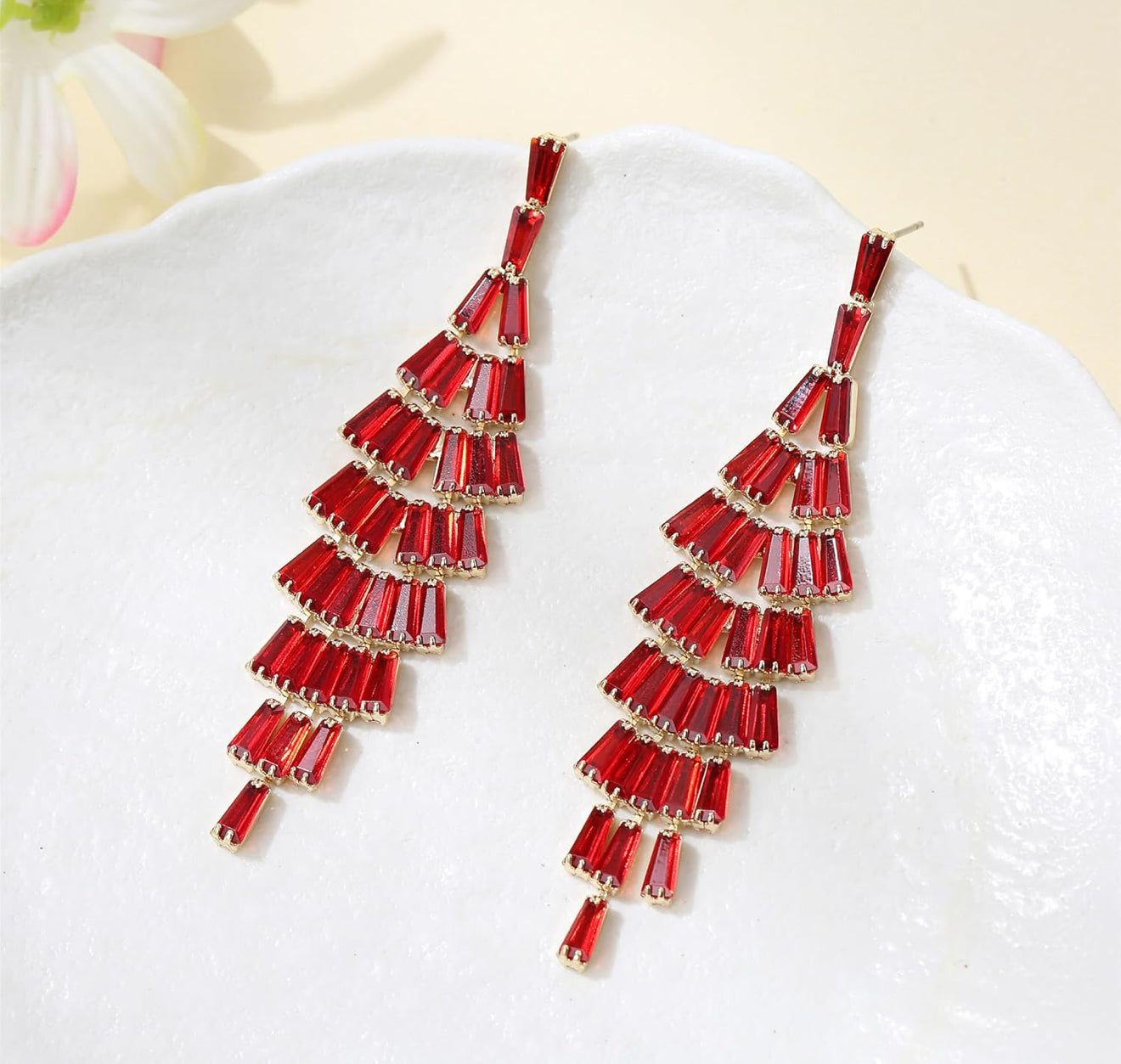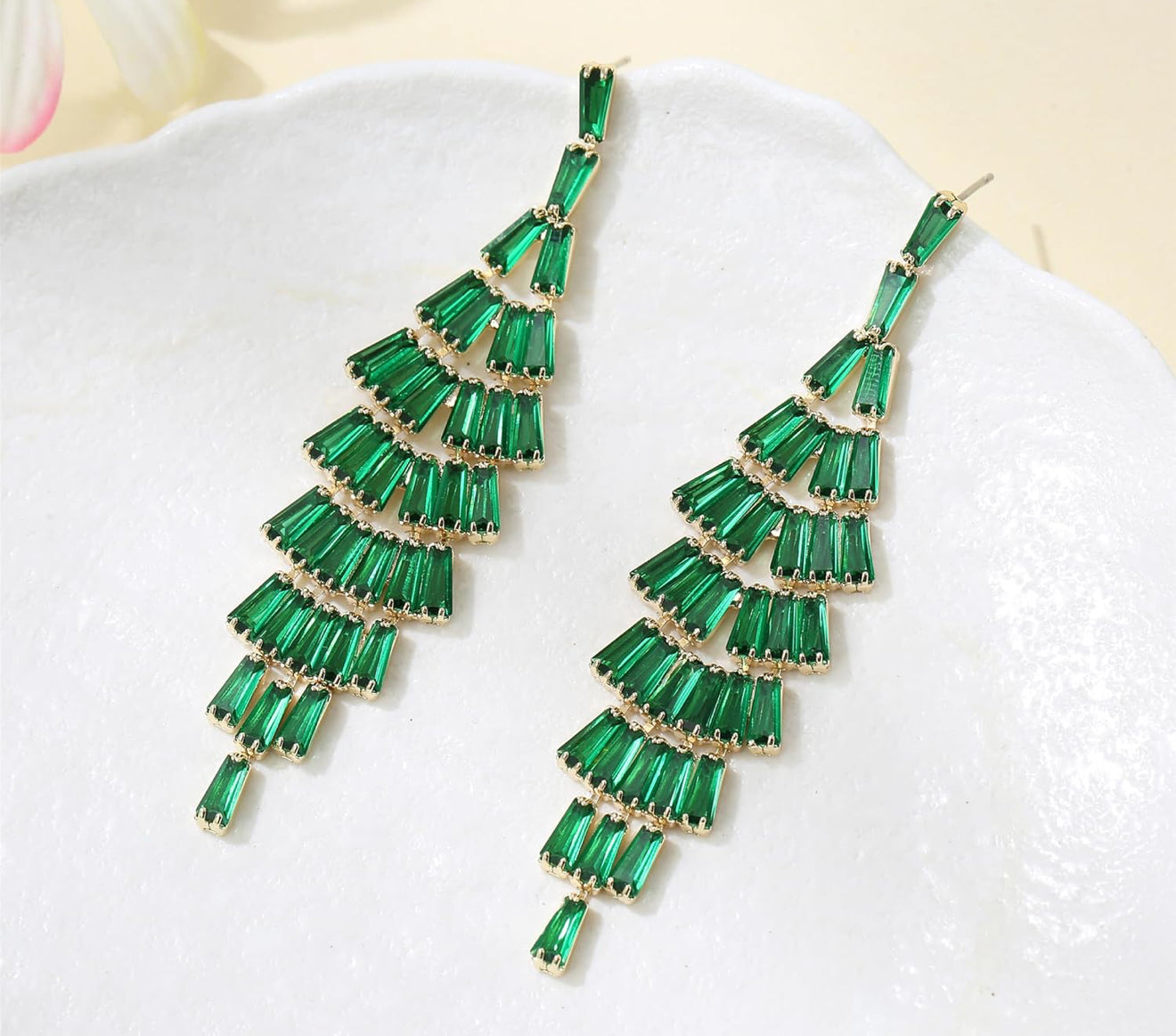 Make an entrance with our Tiered Glam Drop Earrings, a sleek 3-inch cascade of precision-cut baguette stones designed to shimmer with every step. These lightweight, statement drops offer high-impact sparkle without the heaviness — perfect for nights out, celebrations, or elevating your everyday style.