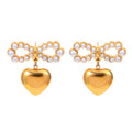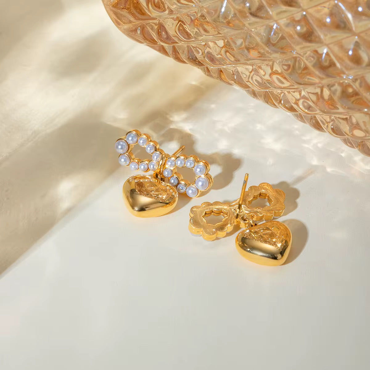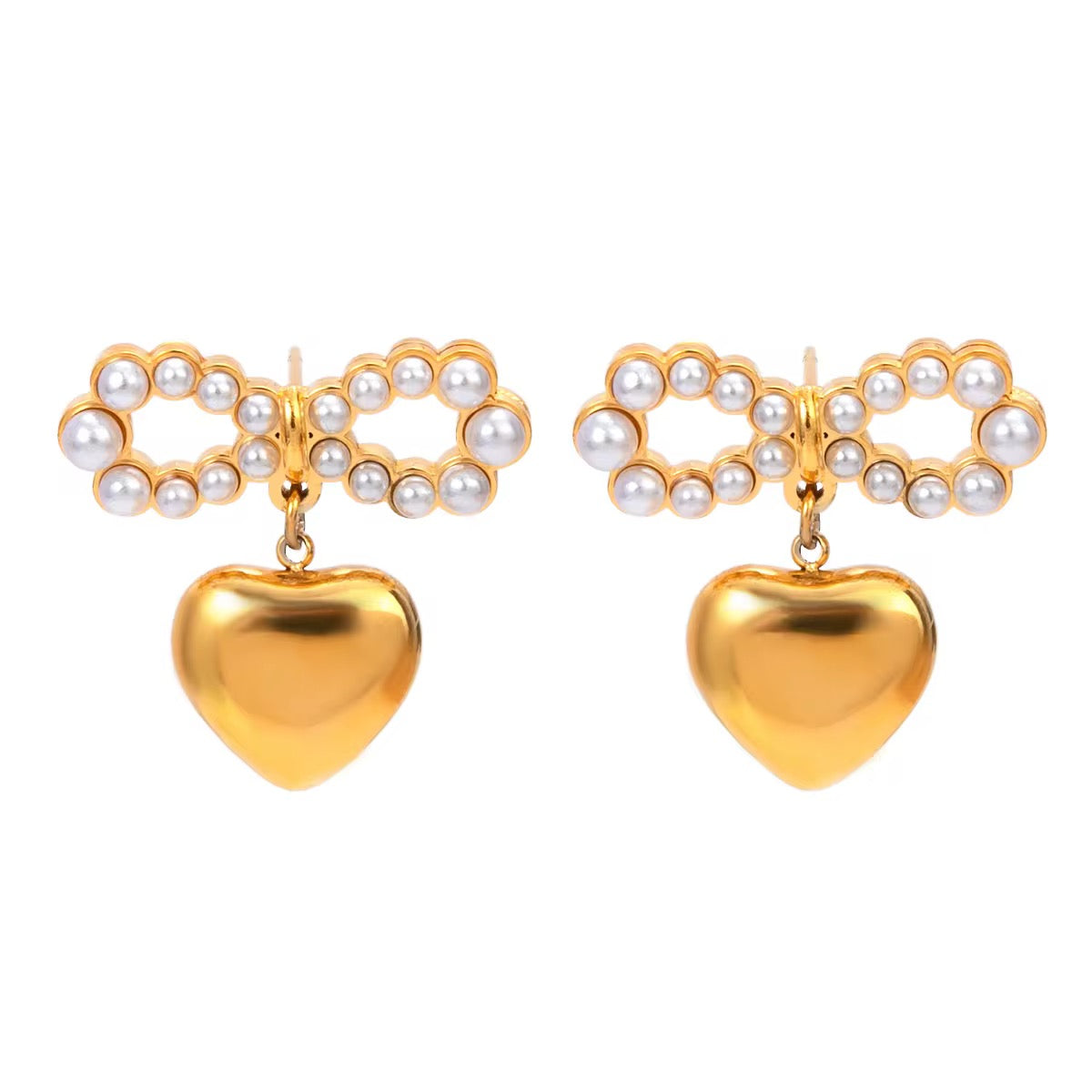 Delicately crafted, the Tiffany Heart & Bow Pearl Earrings feature an elegant bow adorned with petite, luminous pearls, perfectly paired with a gold heart for a touch of timeless sophistication. These earrings exude femininity and charm, making them an exquisite addition to any jewelry collection.