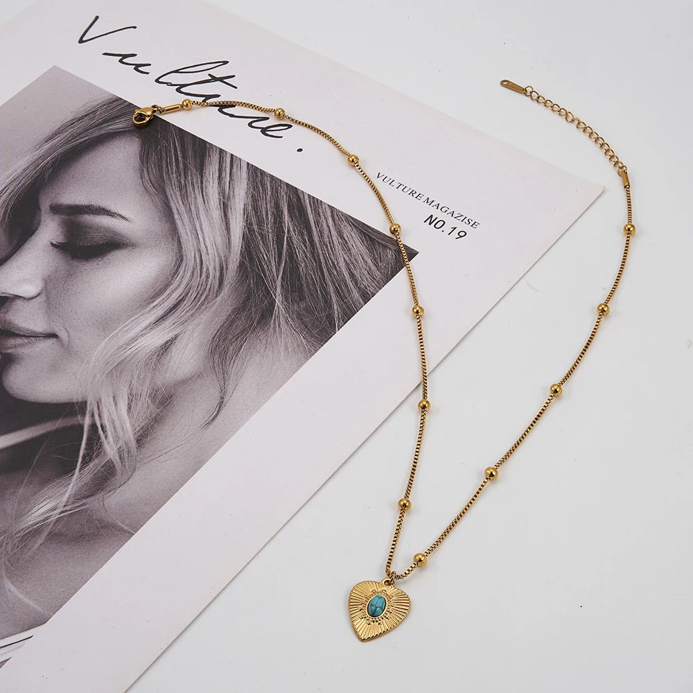 Adorn yourself with elegance and grace with our Turquoise Heart Dainty Necklace in 18k gold. This exquisite piece features a delicate heart-shaped turquoise gemstone, adding a pop of color and sophistication to any outfit. Crafted with care and attention to detail, this necklace is perfect for those who appreciate understated luxury. Elevate your style with this timeless accessory that effortlessly combines classic charm with modern elegance.